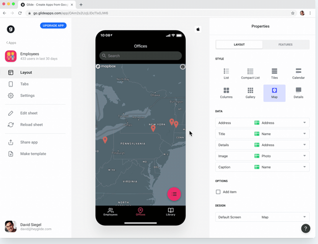 Bubble.io offers a visual, drag-and-drop interface that simplifies the process of designing web and mobile apps. Users can create the front-end by placing elements on a canvas, and the platform automatically generates the code to bring the design to life.